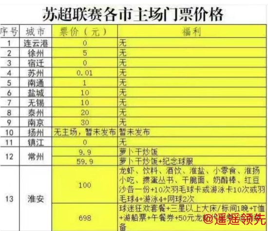 江苏十三太保大多数推行低价球票策略,淮安的足球文旅套餐票因为价格相对较贵,被部分网友认为有“搭售”嫌疑。