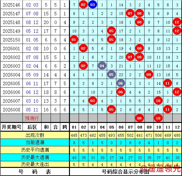 和值跨度:上期和值开出80,对比第2026007期和值上升了17个点位,本期预计和值在大号区域热出,看好出现在96周围。